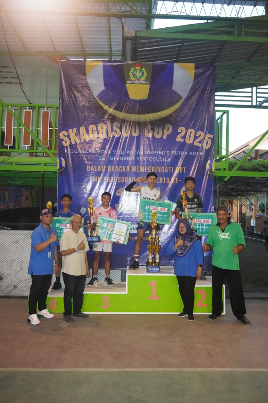 Gresik, 21 Juni 2025 – Kabar membanggakan datang dari tim bolavoli sekolah! Tim bola voli putra UPT SMPN 26 Gresik berhasil menorehkan prestasi gemilang dengan meraih Juara 2 dalam Turnamen Bola Voli Antar SMP Se-GERBANG KERTOSUSILA (Gresik, Jombang, Mojokerto, Surabaya, Sidoarjo dan Lamongan) yang baru saja berakhir di SMK PGRI Sooko Mojokerto pada tanggal 21 Juni 2025.